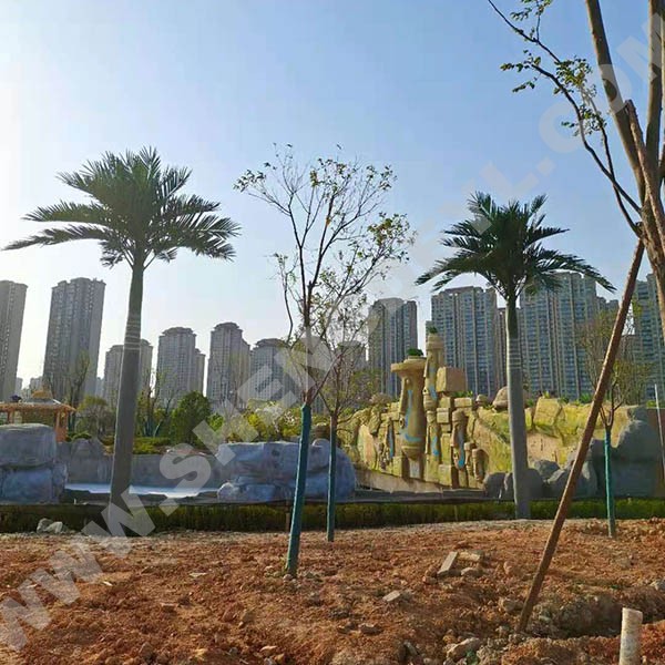 仿真椰子樹通常采用璃鋼樹脂樹桿結(jié)構(gòu),采用高性能環(huán)氧樹脂和玻璃纖維纏繞成型,樹桿內(nèi)采用國(guó)標(biāo)鋼結(jié)構(gòu),樹葉采用ABS塑料或PU等高性能防阻燃環(huán)保材料。耐腐蝕性能良好,耐老化耐高溫防阻燃,更加環(huán)保,防紫外線。